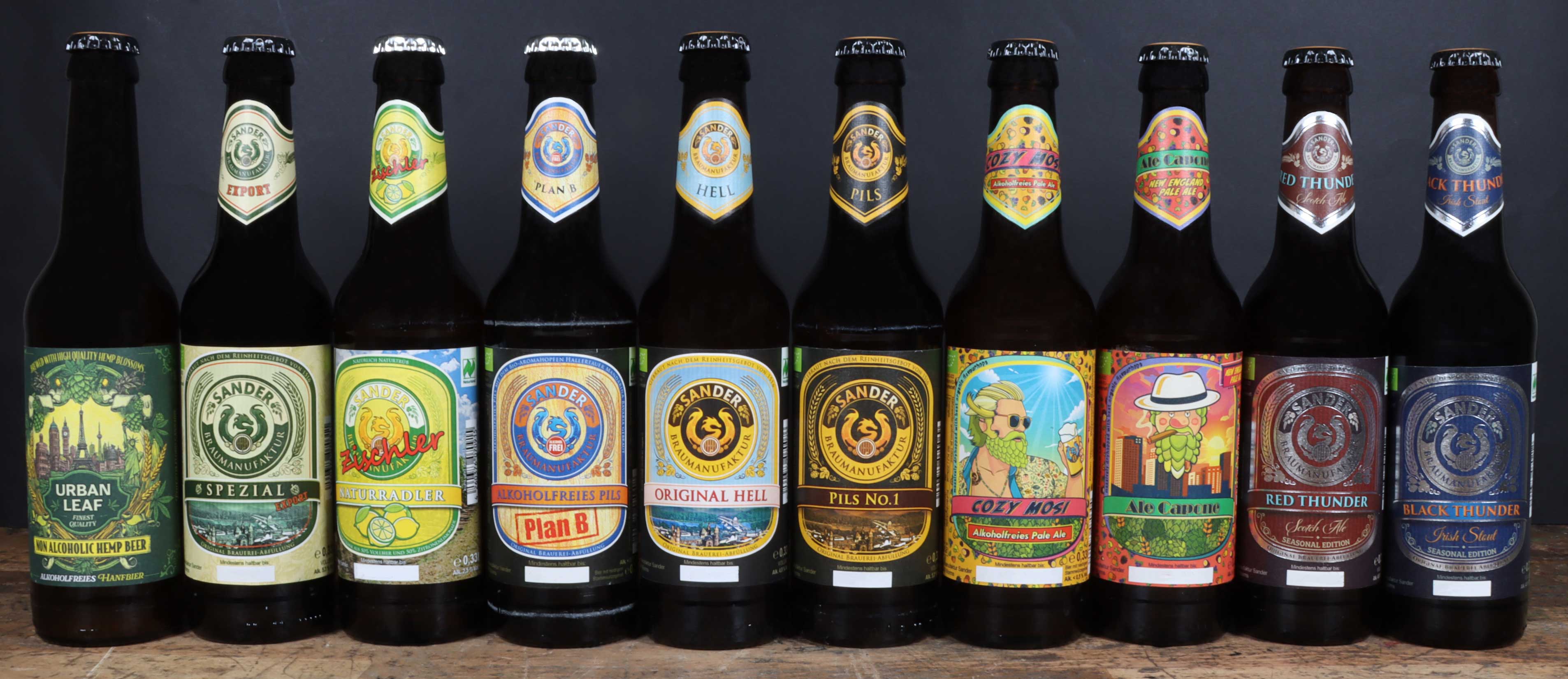 Die Brauerei produziert auch eine Vielzahl anderer Biere, darunter Pils, Hefeweizen, Dunkles und sogar ein alkoholfreies Bier. Jedes Bier wird mit Sorgfalt und Leidenschaft hergestellt, um den hohen Qualitätsstandards der Brauerei gerecht zu werden. Sander bietet auch Spezialitäten wie Pale Ale, Old Barrel Stout, India Pale Ale und Rubi Red Ale an.